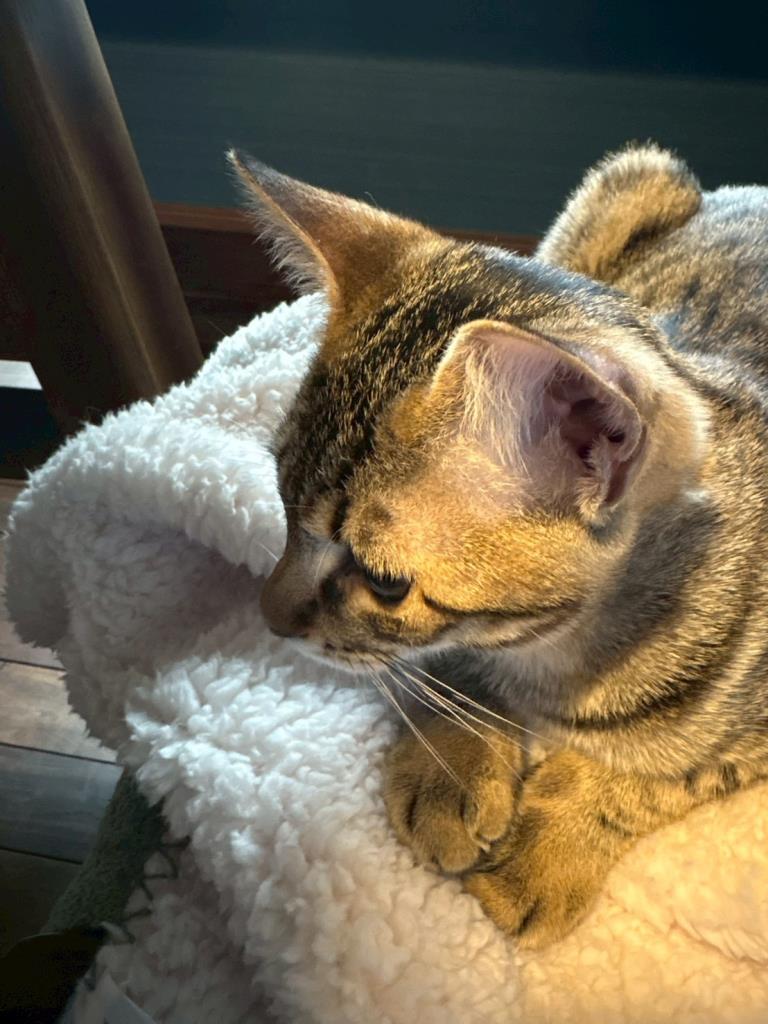 控え目でマイペースです。撫でると瞬時にゴロゴロと鳴らして甘えてくれます。
