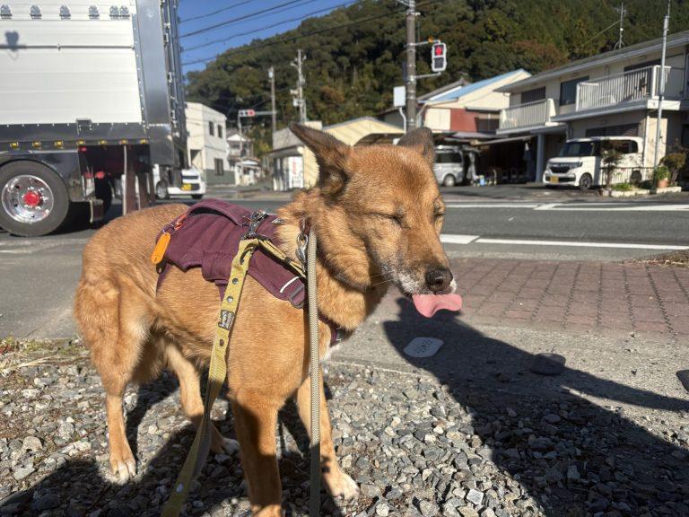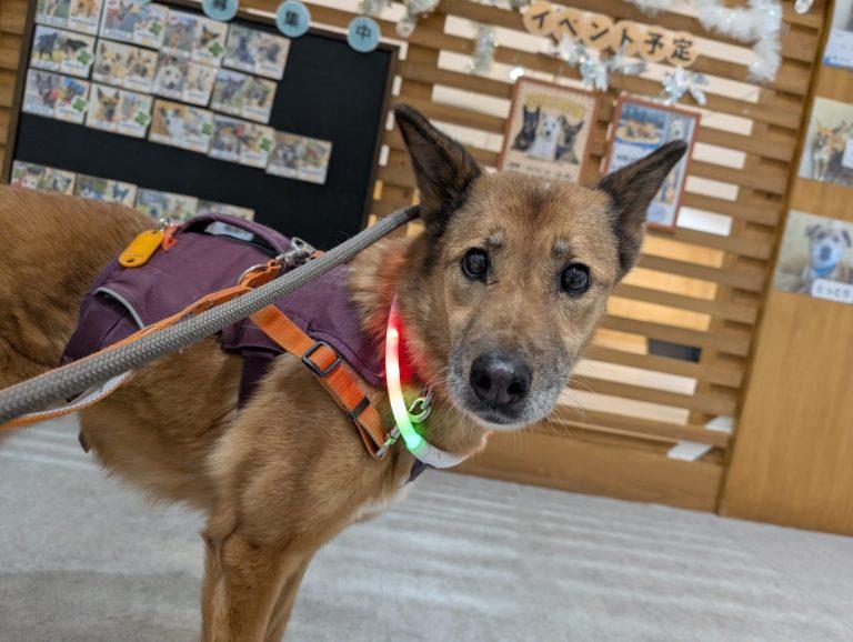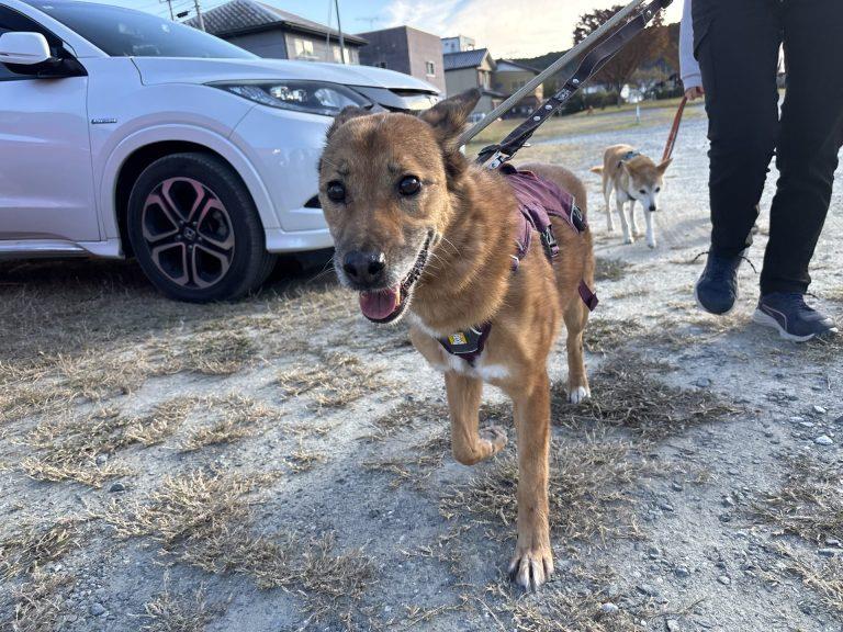 【散歩】お部屋から外に出るときは渋々という感じですが、外に出るとスタッフより前を歩き、好きな場所では尻尾フリフリで歩きます。怖々ですが街中でのお散歩も可能です。