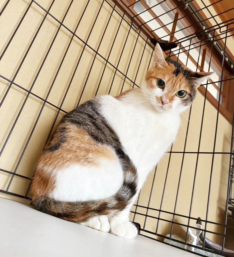 4匹の子猫を育てた小梅さん😊頭が揺れる、後ろ足に力が入らない等の症状あり、療養中です。母は強し…まったく触れません😊グルメです✨