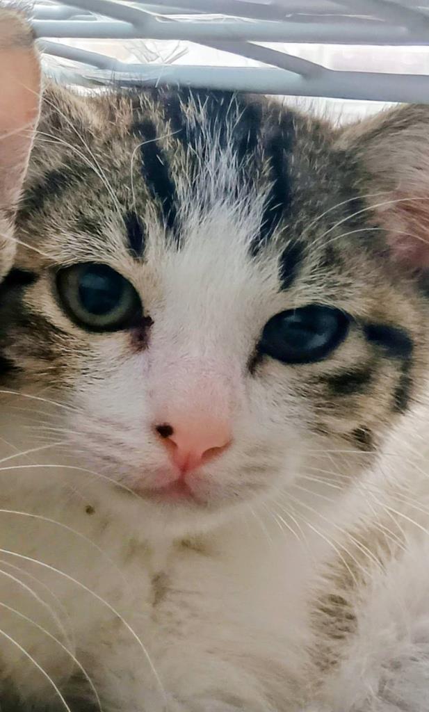 右肩、体勢によってハート型になります!抱っこさせてくれますが、すぐ降りたがります。姉妹で活発にじゃれ合って遊びます。寝る時は必ず姉妹いっしょにくっついてます。別々で寝ることはまずありません。とても仲良し姉妹です。きれいなストレートしっぽが見分けポイントです。