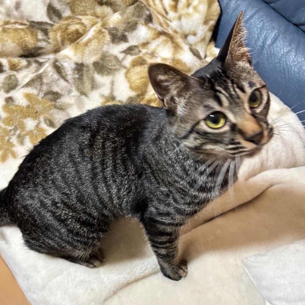 2024年10月 体重が370g時に保護 子猫時はなかなか体調が上がらずに苦労しましたが、現在は元気いっぱいです。