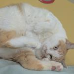 収容時から歯周病と鼻汁がひどく、全抜歯を行いました。治療の過程で口の中の軟口蓋という場所に5㎜ほどの穴が開いていることがわかり、穴をふさぐ処置も行いました。現在、鼻汁は減少し、経過は良好です。収容時から左眼の開きが悪いですが、視力に問題はありません。