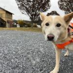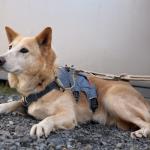 【お散歩】車の音に少し驚いていますが、人の横を落ち着いて歩いてくれます。