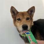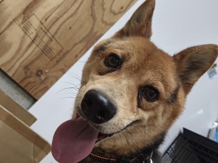 茶色いお顔に黒色が特徴の笑顔がとっても可愛い子です。