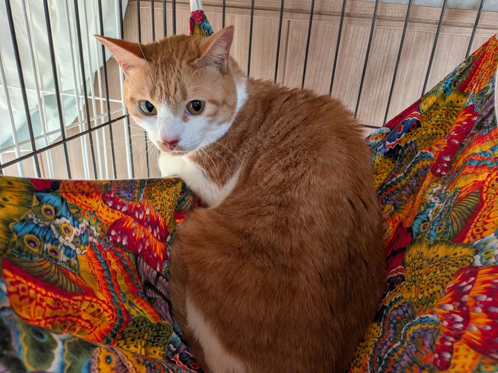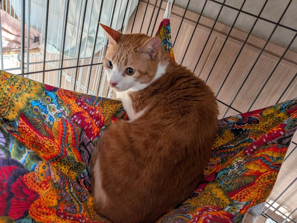 【性格】野良猫ではなく、アパートで生まれ育った猫なので人との暮らしができます。初対面の人は怖がりますが、慣れたらおもちゃ遊びをしたり、本来の甘えん坊らしさを発揮します。