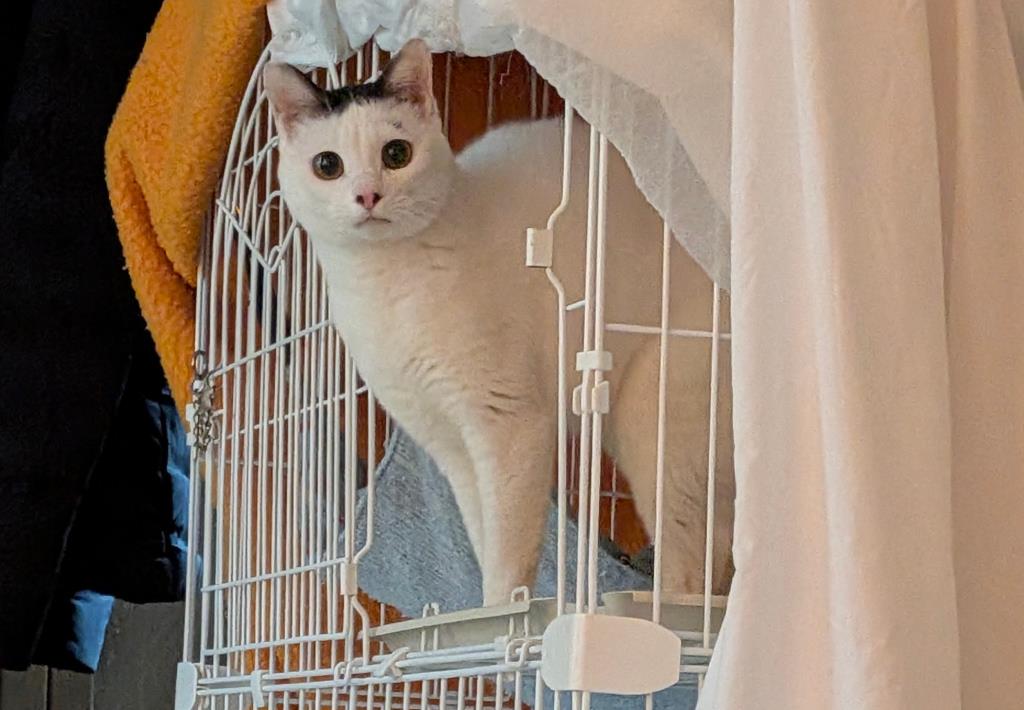 【性格】人なつこくて素直な甘えん坊です。布団の中まで入ってきます。ケージ・トイレしつけ済。お留守番可。