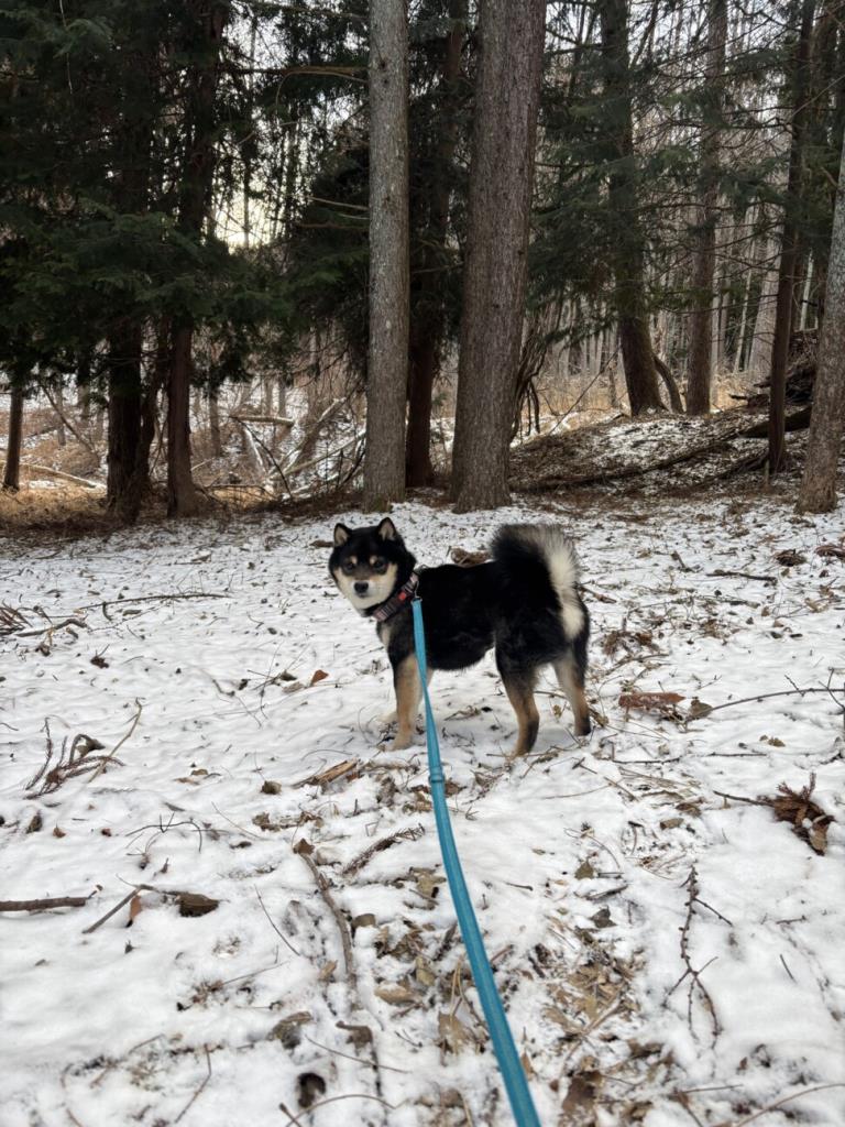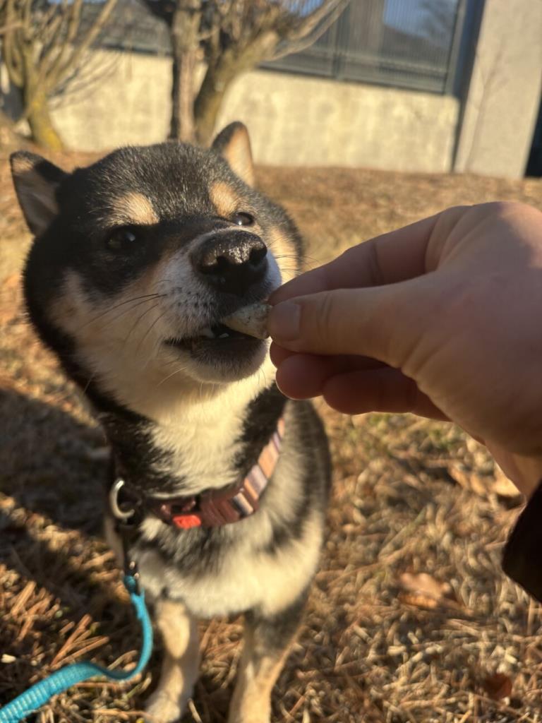 お散歩が大好きで、楽しそうに歩きますが、大通りなど車通りの多い場所は少しだけ緊張する一面もあります。