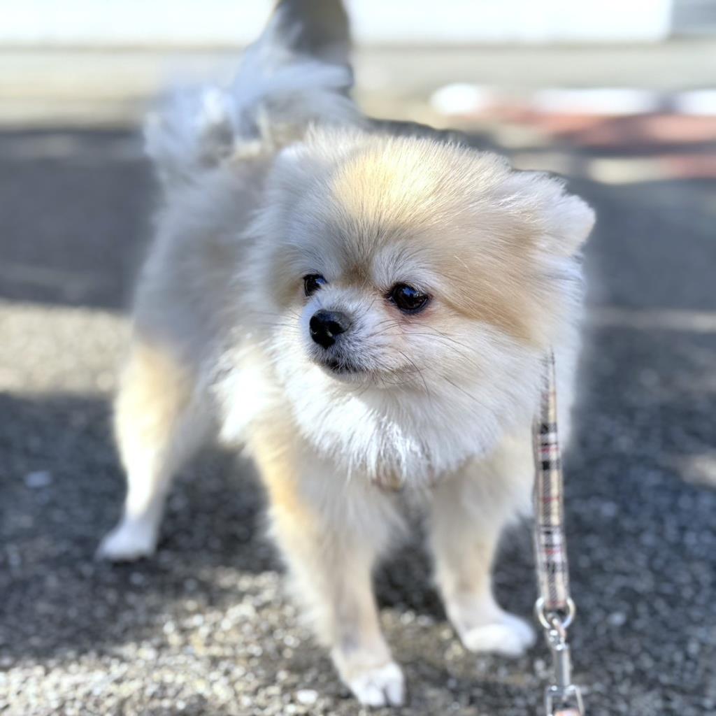少し怖がりですが、慣れると甘えてくる穏やかな性格です。娘のチェリルちゃんと一緒に過ごしたり、ケージから出て室内をウロウロしています。鼠径ヘルニアがあり、手術は済んでいます。