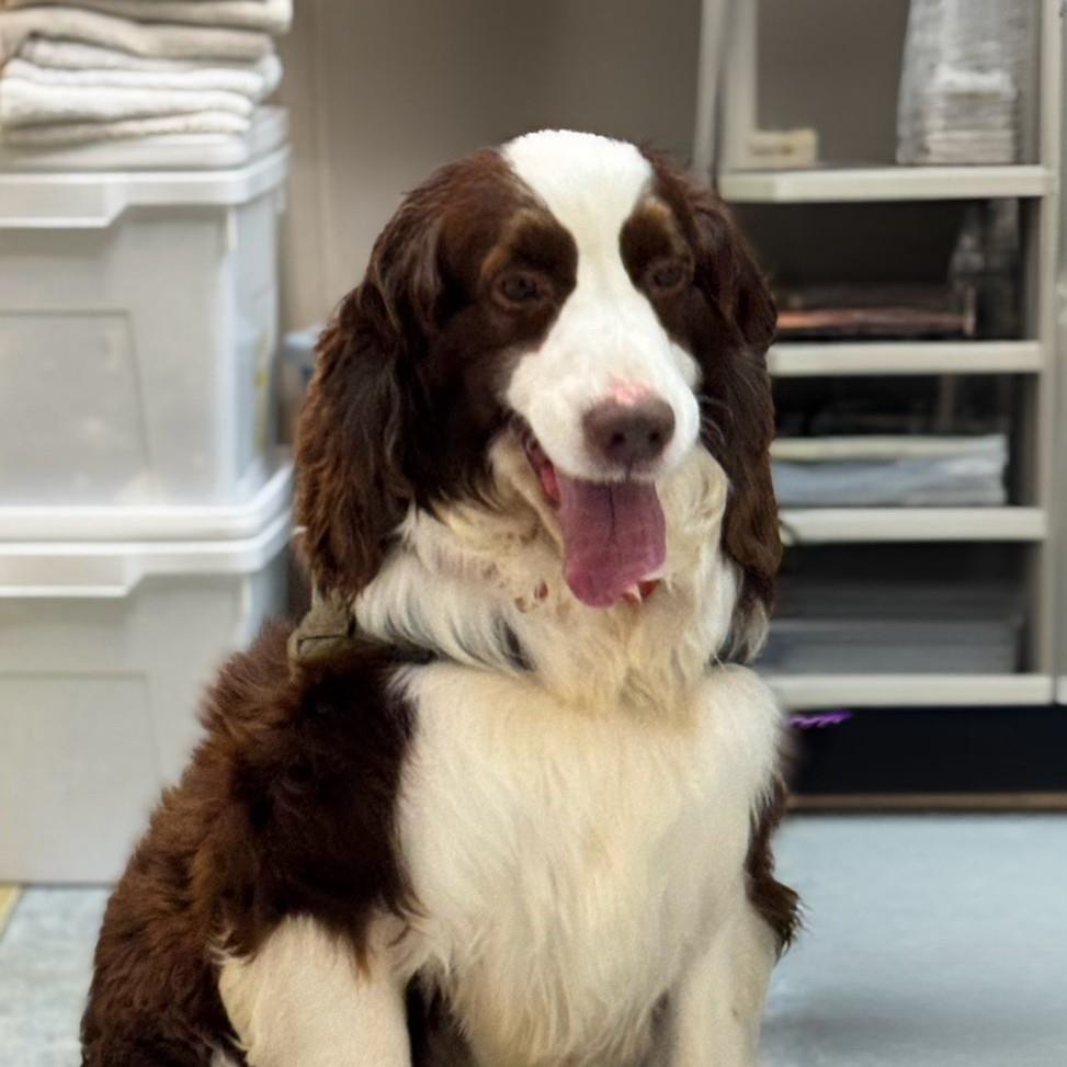 甘えん坊さんで怖がりです。人がいないと吠えて呼びます。常に人のそばにいたい様子です。