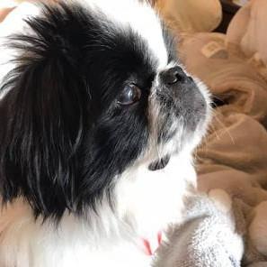 体型はペキニーズ、色は狆 性格も狆の穏やかなところが多く出ていると思います。