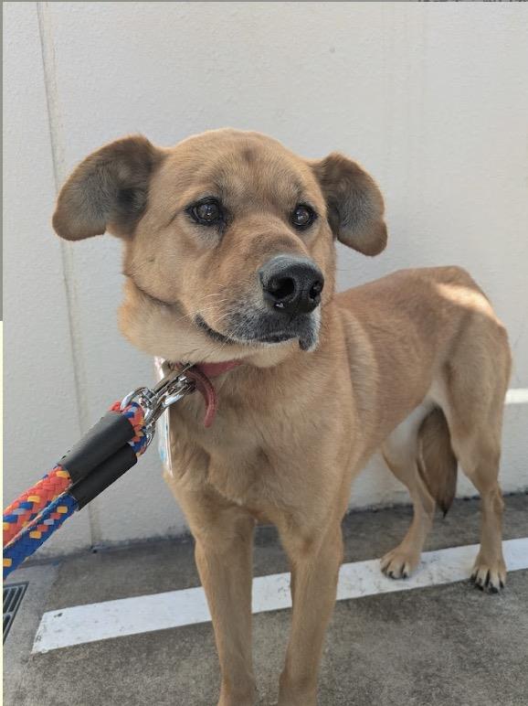 明るい茶色の毛並みがきれいな中型犬です。