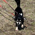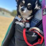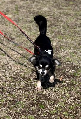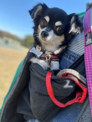 お散歩はデビューしたばかりです。スリングで野外活動は大好きで良く周りの景色をしっかりと見ています。自足ではリードにテンションをかけなければ静かな住宅街や公園などでテッテテッテと早足で歩きます。顔周りにリードがくると嫌がるため気をつけています。急な音などまだまだ野外は怖いこともありますので焦らず丁寧にお勉強している段階です。お散歩犬仲間や同居犬がいると覚えが早そうです。