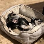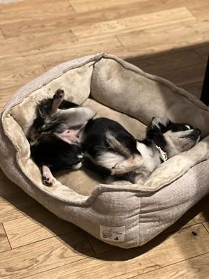 就寝はクレートに入れ人の気配がある部屋ですとぐっすり朝まで眠ってくれます。寂しがりやさんなので寂しくなると遠吠えが出るタイミングもあるので、人を感じれる場所には居たい様子があります。