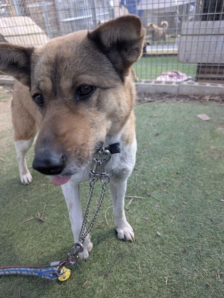 もともと野犬出身で、センターやシェルターで過ごしてきたため、人と密接に接する機会はまだ多くありません。