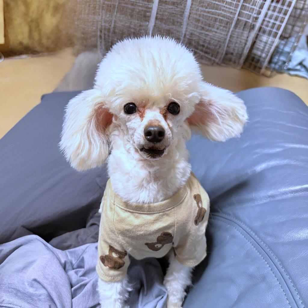 とても甘えん坊で、静かに尻尾を振りながら寄り添う子です。そっと後ろで待つ健気な一面もあります。停留睾丸は手術済みで、多くの歯がありません。肝臓の数値がやや高く、定期検査が必要です。今後CT検査の可能性もあるため、ご理解いただける里親様を希望します。