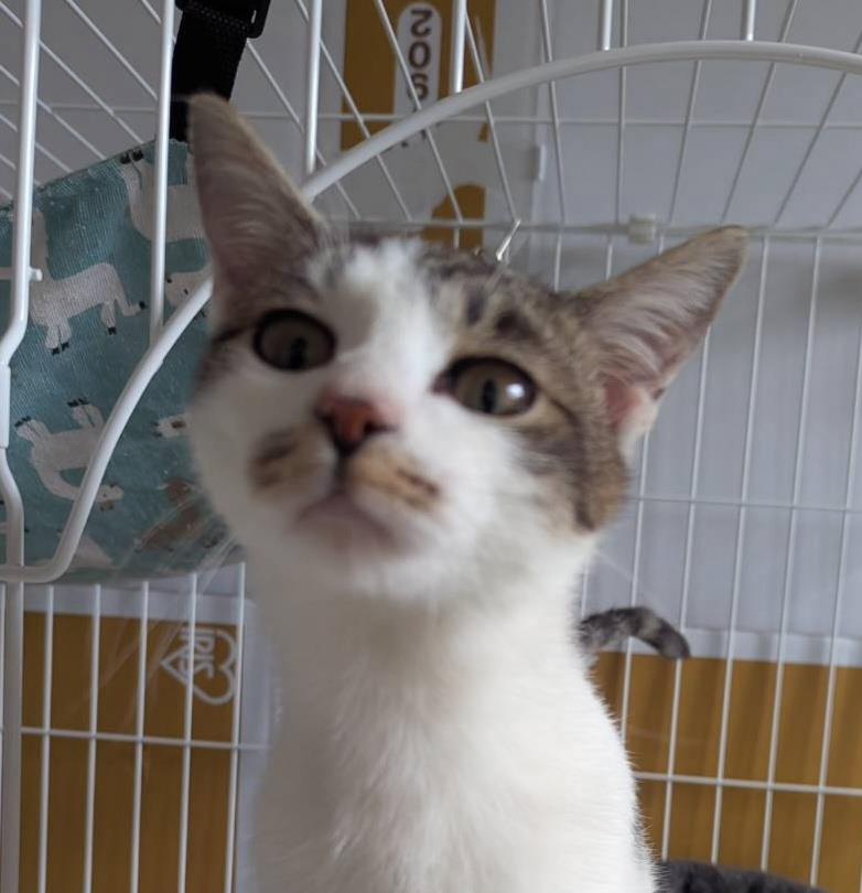 12月のTNRのときに保護。懐っこくて誰にでも近寄り、虐待のリスクがあることと、ガリガリだったことから保護しました。1月に乳歯の牙が生え変わったので、推定2025年7月生まれとしています。