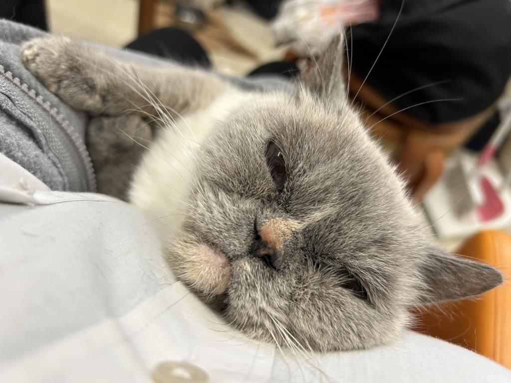 撫でてもらうのが好きで、特に顔周りを撫でられると嬉しくてゴロゴロが止まらなくなります。