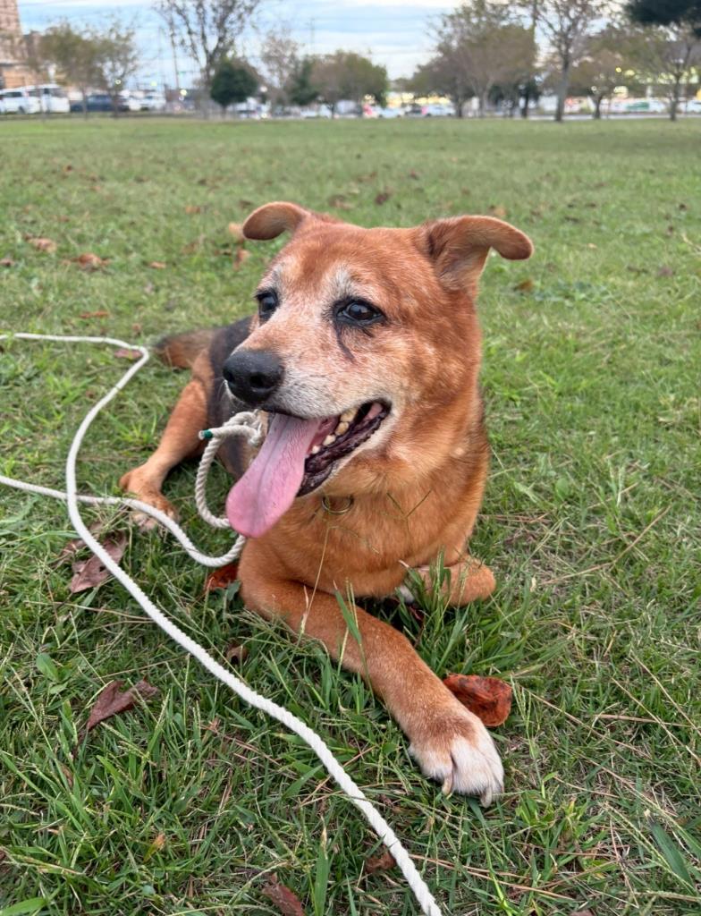 シニアである事・心臓肥大である事・これらの事で疲れやすい体のため、近所をお散歩したり、公園でロングリードにて大吉のペースで遊ばせています。