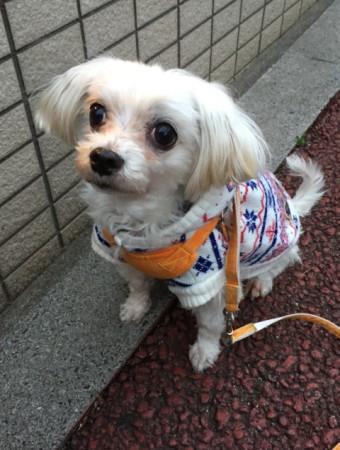 散歩は問題なく歩けます。他の犬に対しても吠えません。ただハーネスを装着するとき怖いのかブルブル震えながらもシッポ振っています。