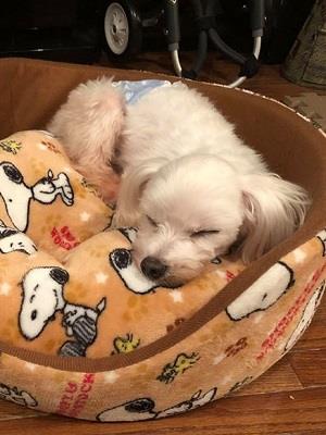 1人でベッドで休んでいることも多いので先住犬がいなくても落ち着いて暮らせそうです。