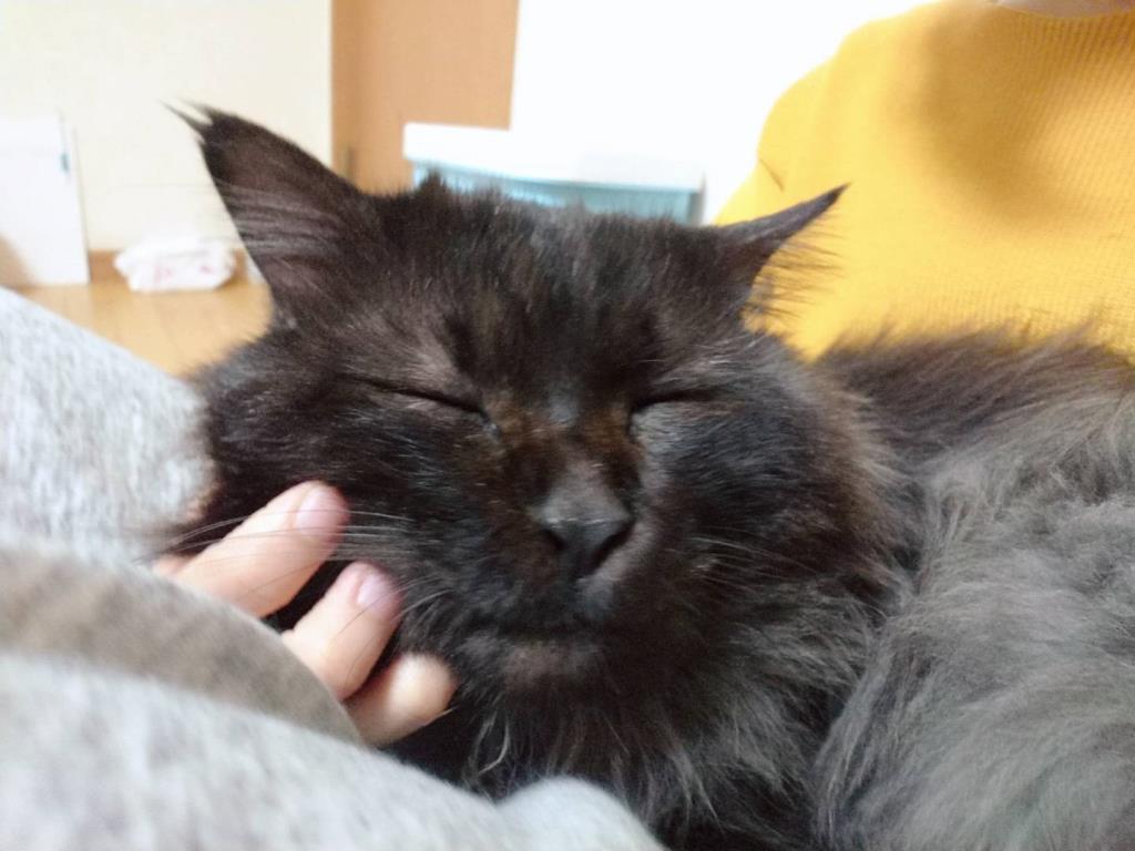 とても甘えん坊で、いつも人にくっついてゴロンゴロンしてます。お膝に乗ってきます🎵