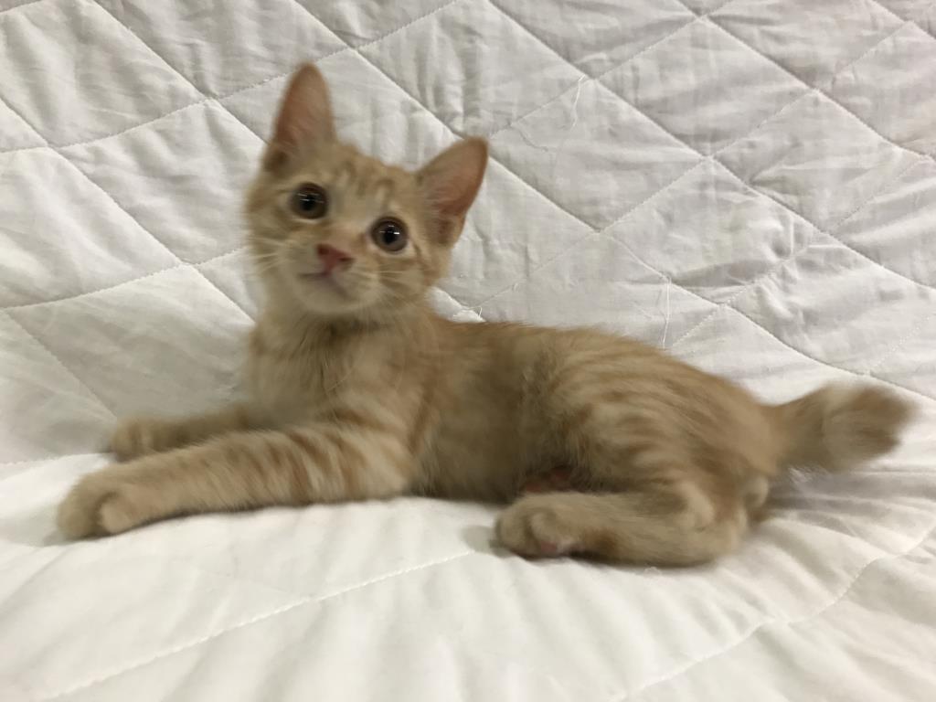 保護当初は風邪をひいて、おなかを壊していましたが、現在は元気いっぱいの健康優良児です。間もなくワクチン接種(二回)済んでます。ノミダニ、おなかの虫は駆虫済み。エイズ白血病検査陰性。