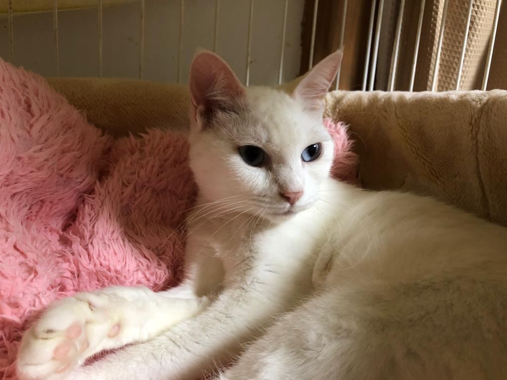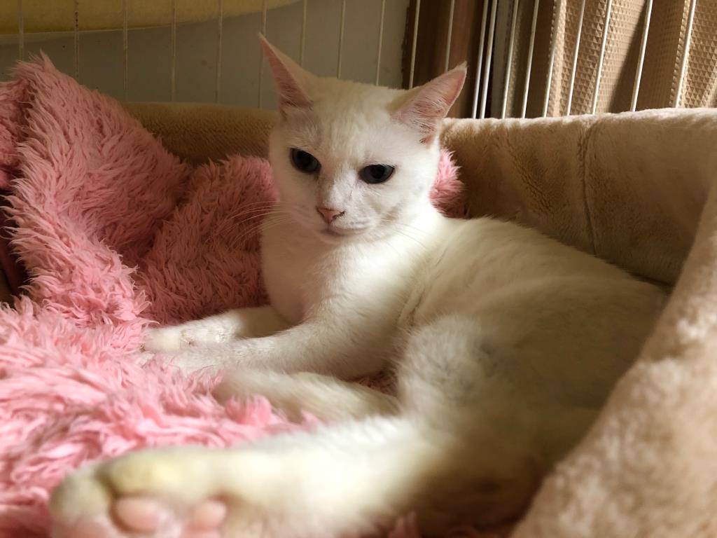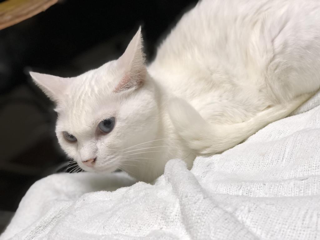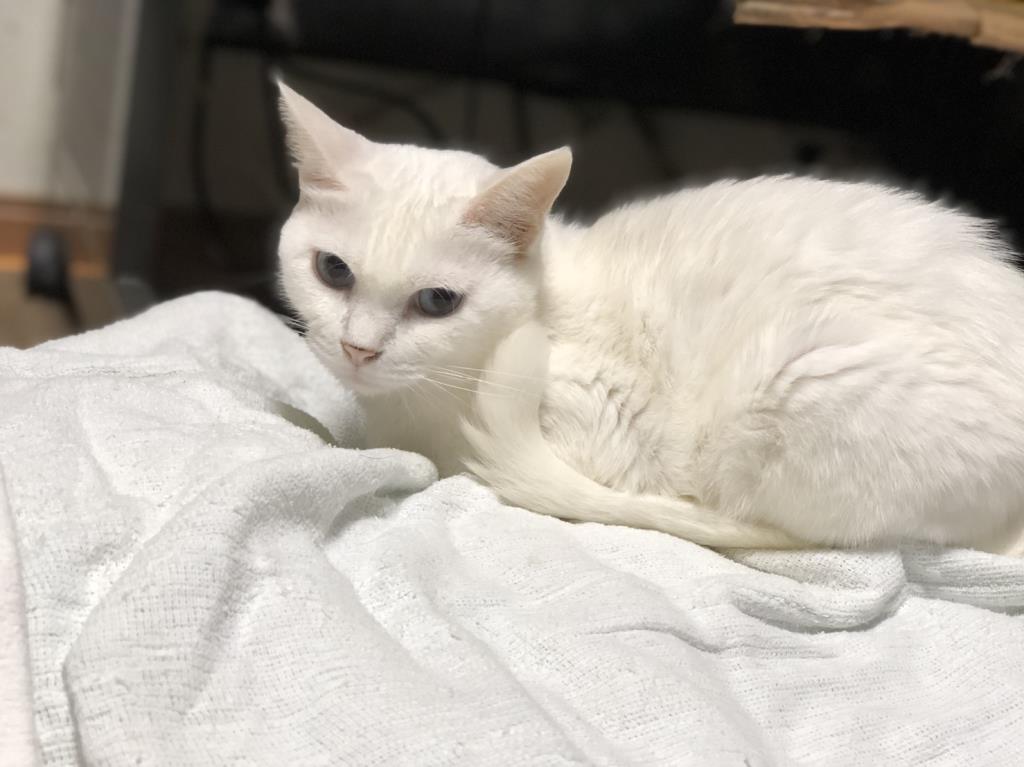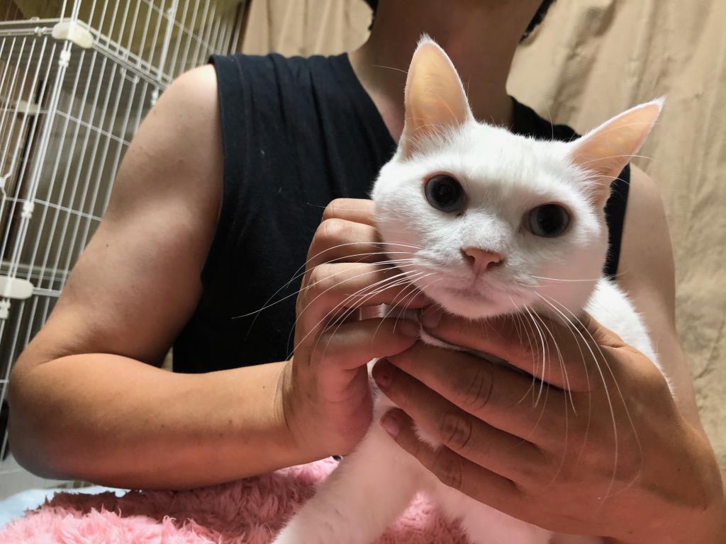 名古屋市動物愛護センターからやってきました。室内で未避妊未去勢の白猫ばかりを多頭飼育していた飼い主よりセンターに持ち込まれました。人のことは大好きでフレンドリーに接しますが、猫のことは苦手です。拙宅には数多の保護猫がおりますので、姫にとってはストレスが多い環境となっていると思われます。姫だけをベタ甘に可愛がってくださる単頭飼養OK!の里親様を探しております。どうぞよろしくお願いします。