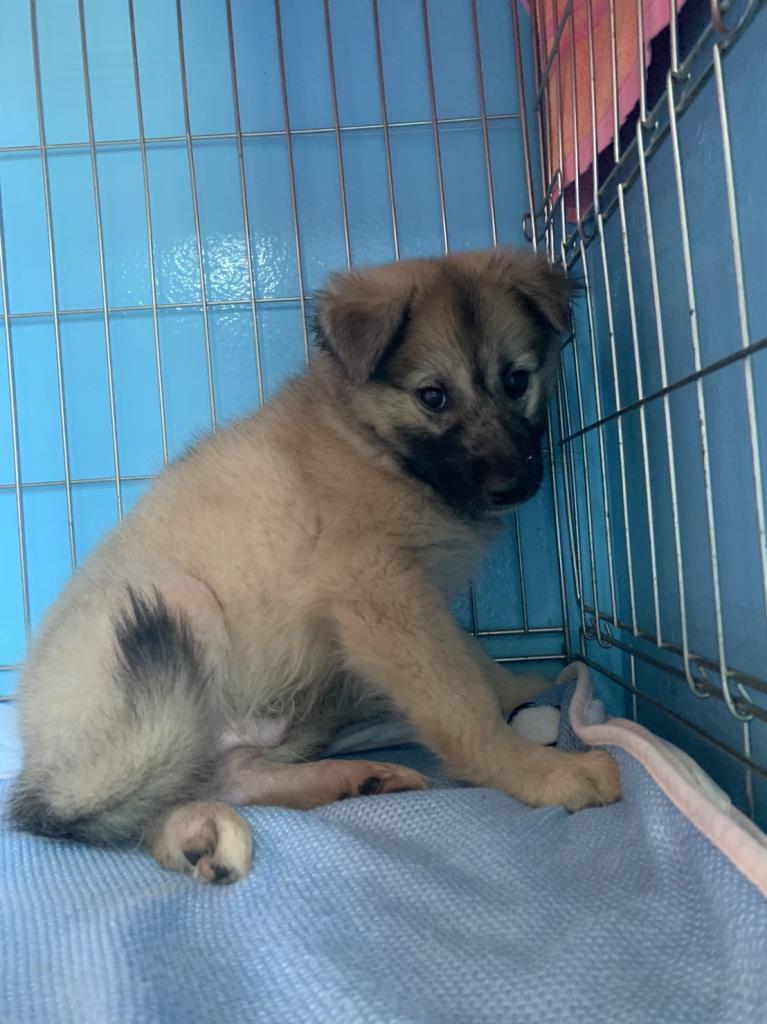 カイセンの治療を頑張っている途中です。まだまだこわがりさんですが成長途中の子犬さんです。