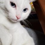 目が薄いブルー色でとても綺麗な目をしてます 怖がりですがおとなしく抱っこできます ウィルス検査はマイナスです