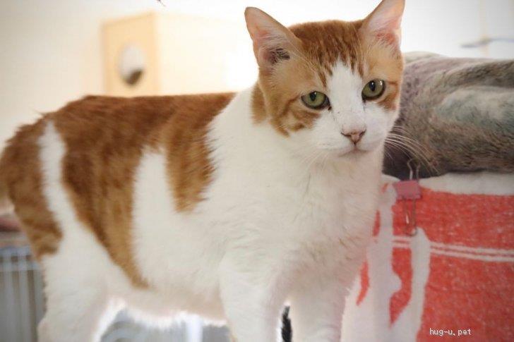 オヤツが大っ好き!短い尻尾の茶白の男の子です。 人馴れ訓練中なのでまだまだ人見知りをして猫パンチをますが、オヤツを持って行くと真っ先に飛んできておねだりをしてきます。