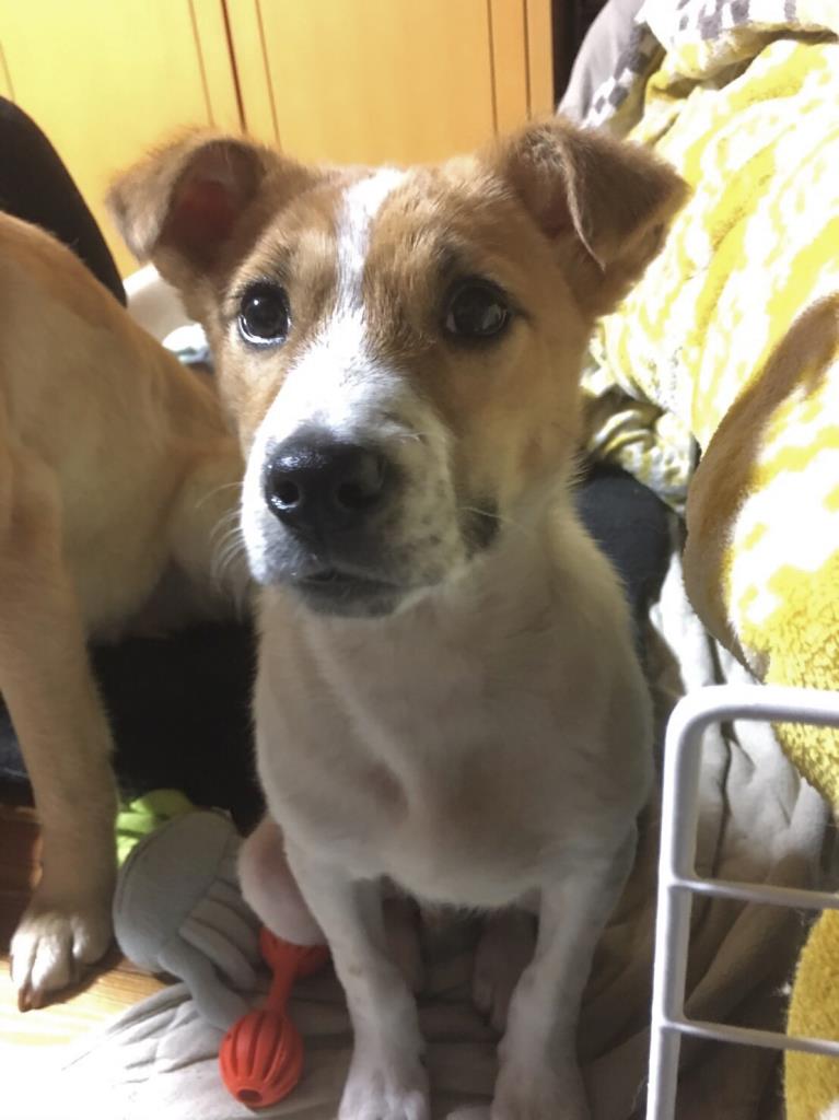 駆虫、ワクチン接種済み。折れ耳と困ったようなお顔の模様がチャームポイント!好奇心旺盛ですがビビリですので、焦らず一歩ずつ、ゆっくりと家族として信頼関係を築いて欲しいです。オスワリ、マテ、ハウス、トイレトレーニング、お散歩を練習中!