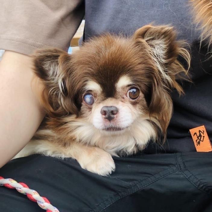 日常の様子:人懐っこく甘えん坊で人の側で寛ぐのが好きです。性格的にはのんびりしていて激しくありません。膝の上に乗ってきてまったりしています。右目が白濁して見えてない様です。見えない側から触られたり犬がくると嫌がり威嚇します。沢山犬がいる場所は苦手みたいです。ケージが苦手でフリーで生活しています。