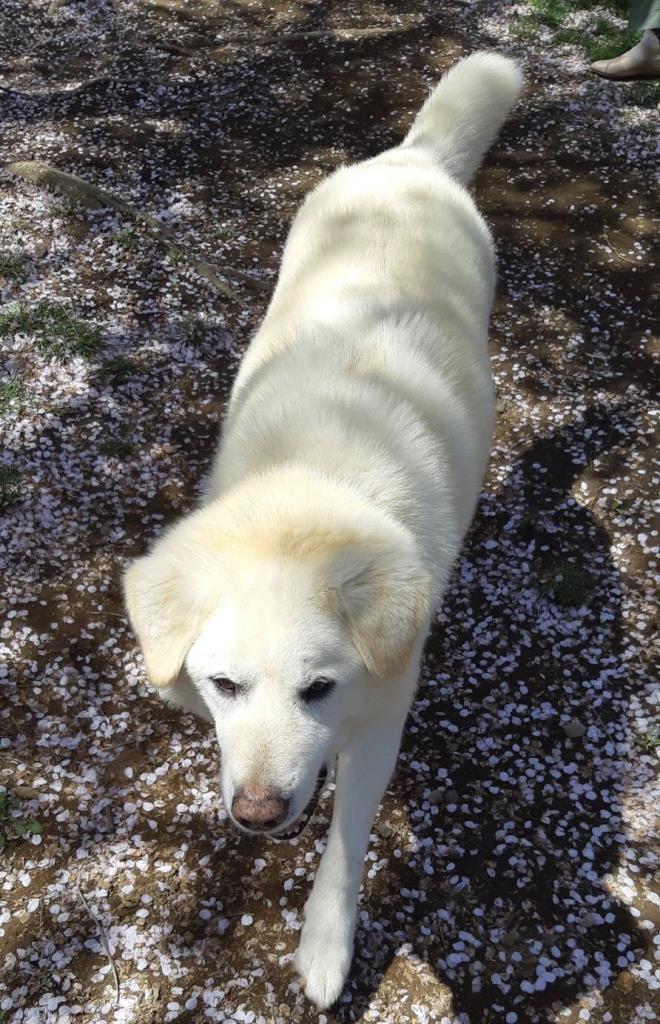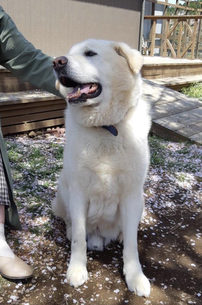 とにかく大きく存在感はありますが、とっても穏やかでお茶目なポチ。お散歩も上手でゆったりと歩きます。