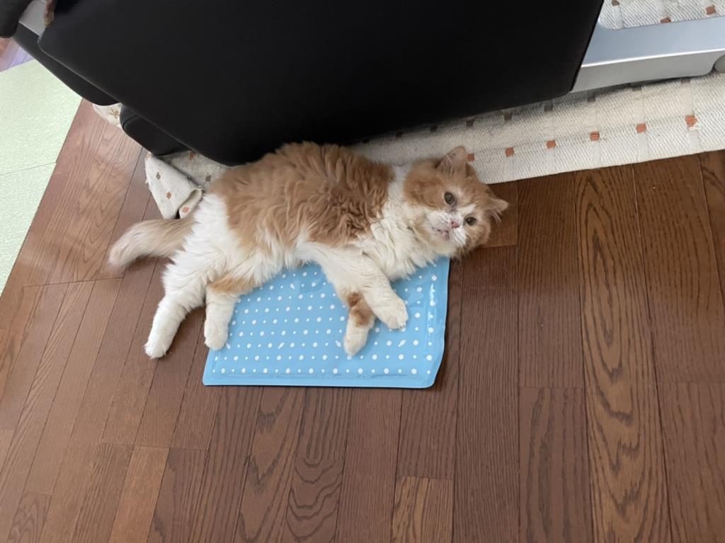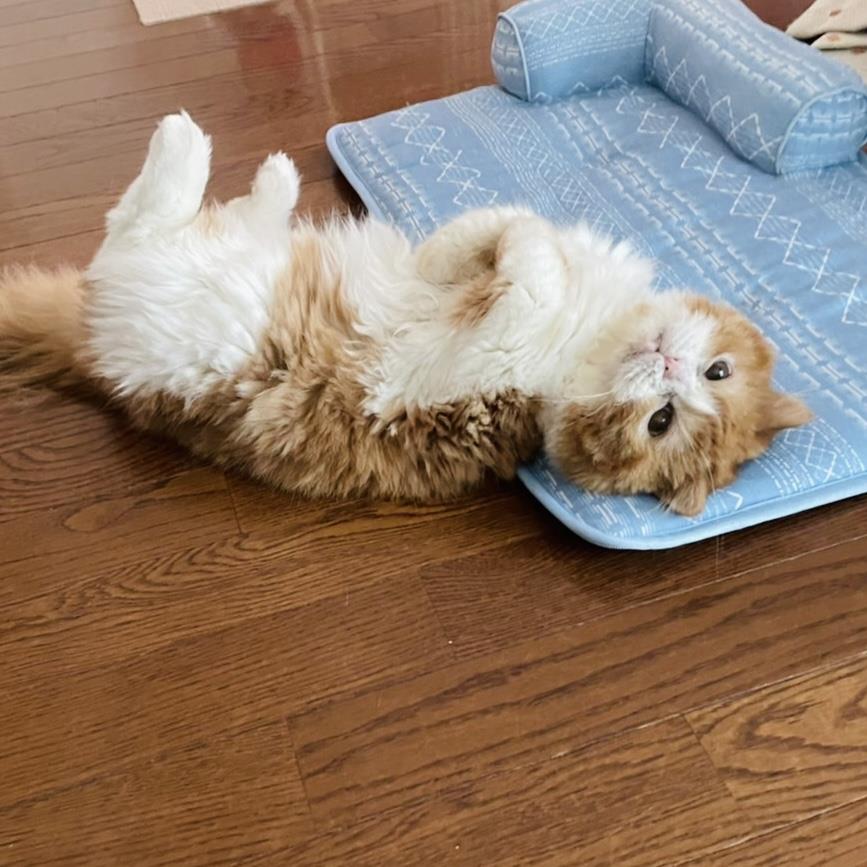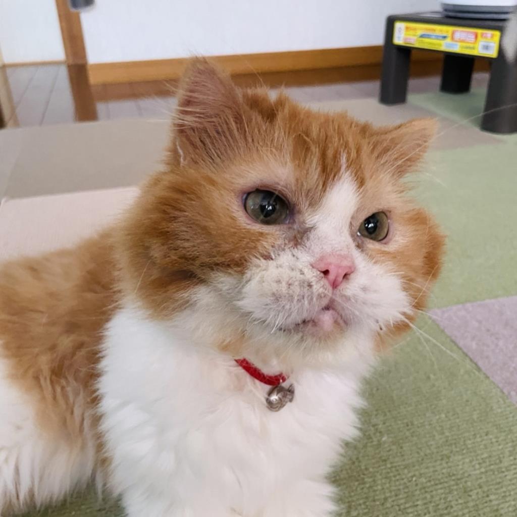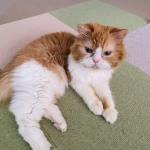 日常の様子:骨軟骨異常のため前屈みでゆっくり歩きますが、部屋を移動し好きな所で寛いでいます。先住の猫にも臆することなく、マイペースで過ごしています。爪研ぎも毛繕いもできます。トイレは完璧で粗相はありません。ブラッシングは好きで大人しくさせてくれます。