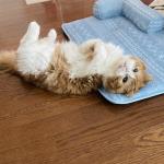 骨軟骨異常のため、歩きはゆっくりで、お座りはできません。30㎝ほどの高さのジャンプはできます。