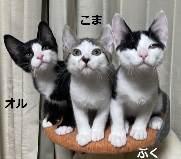 愛護センターよりミルク猫でやって来た3匹 推定誕生日3/14 トライアルが決まり里親様宅にお邪魔しましたら里親様が体調を崩され返していただきました。人なれ抜群の兄妹です よく遊び健康で人間も猫も大好きです。姉弟一緒か先住猫さんのいるお家に行ってくれればうれしいなと覆っています