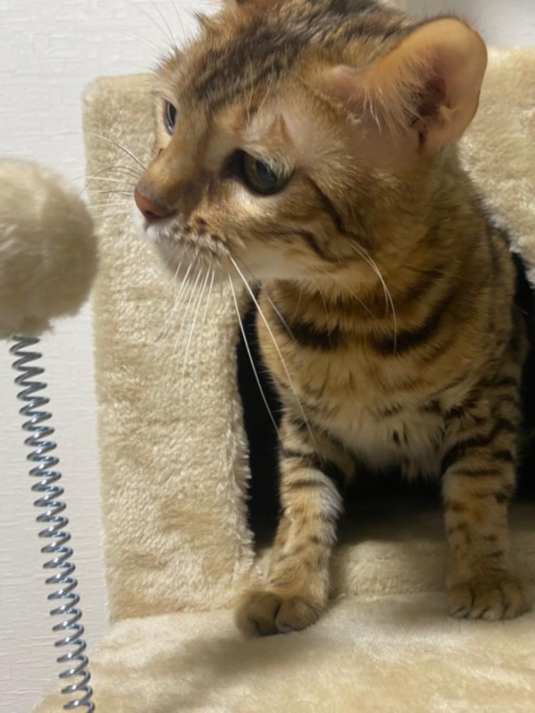 日常の様子:好奇心旺盛で、人懐こく、自ら近付いてきて甘えます。留守時・就寝時ケージ、在宅時フリー。