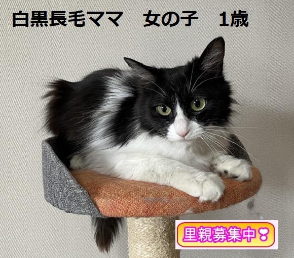 マンションのベランダでご飯をもらっていた子です。春に子猫4匹を出産し、子猫達は里親様が見つかりました。ママ猫にも幸せになってもらいたいと里親様を探しております。長毛の子ですので頻繁にブラッシングをお願いします。最初は警戒していましたが今ではスリスリしてくる甘えっこです。