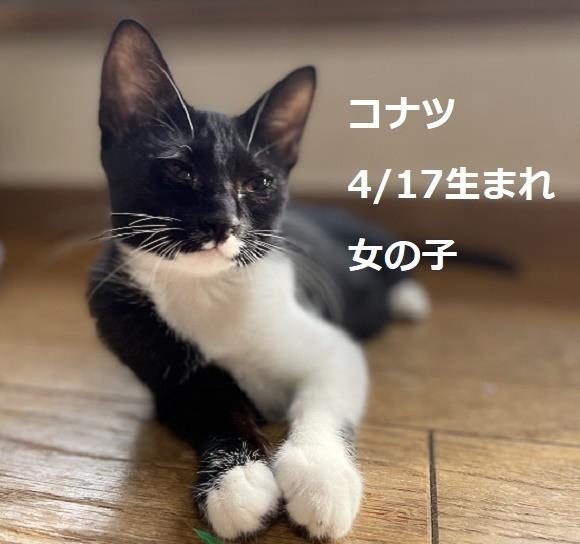 民家の庭でご飯をもらっていた白黒のママ猫(去年の8月生まれ)が4/17に産んだ子です。ご飯をもらっていたうちの押し入れに入りそこで出産、そこで子育てをしていました。子猫の歯が生えだしたのでママ猫と離し保護しました。人なれ抜群でスリスリの甘えっこです。