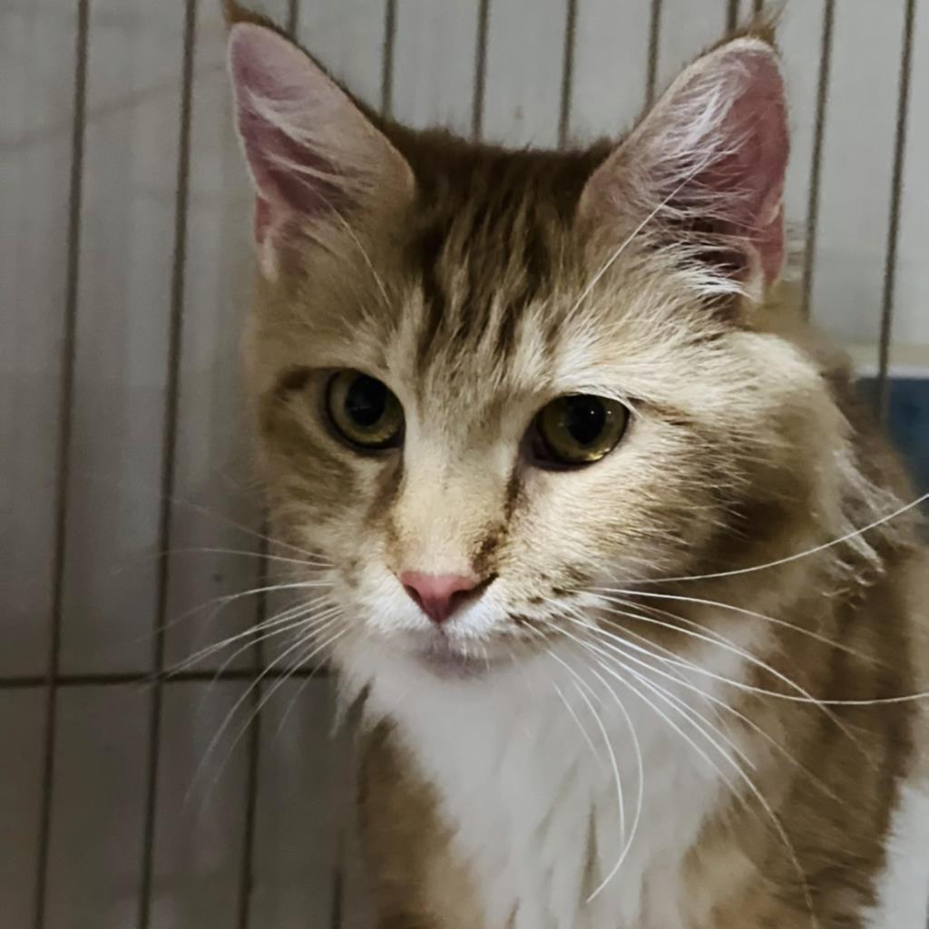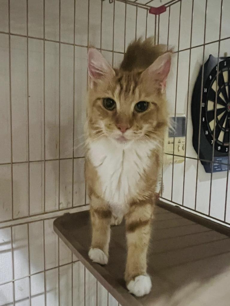 他の猫に追いかけられて、ケージに自分から逃げて入っていて、性格は穏やかそうです。