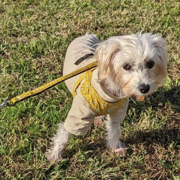 散歩: 公園や川沿いの芝生など静かな場所では歩けるようになって来ました。お散歩前にハーネスをつけるのは嫌がります。