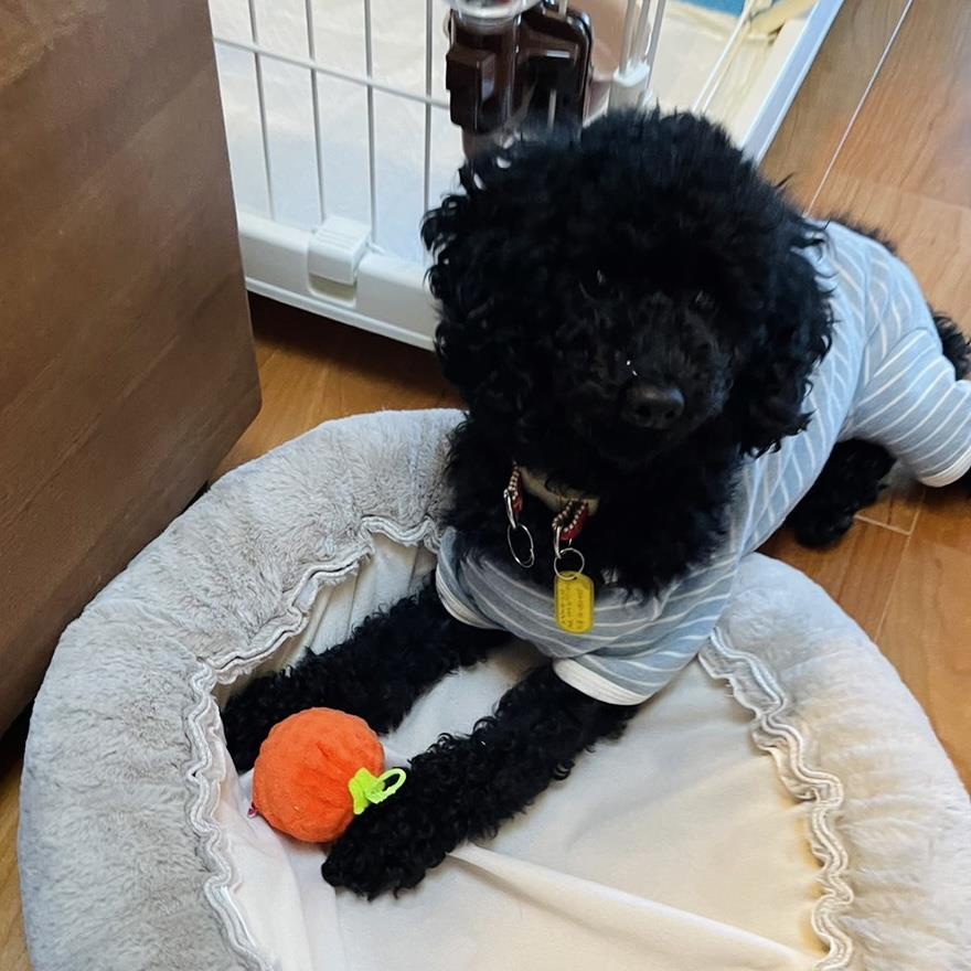 日常の様子:先住犬よりも人に構ってもらいたがります。おもちゃも遊びます。イタズラもあるので注意や対策が必要です。興奮すると飛びついたり甘噛みがキツくなることがありますが、理解覚えが早く賢いので注意するとやめる事が出来ます。ゲージインすると出して欲しがって飛び跳ねながら鳴きますが、お留守番や就寝の時はゲージの中でおとなしく過ごしています。