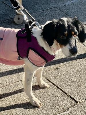 お散歩が大好きで匂いを嗅ぎながら沢山歩きます。ひっぱりが強く瞬発力があります。本犬の10年後も踏まえ現在50代以下の健脚・体力お持ちの方のお散歩担当が好ましいです。鳥には瞬発的に反応がでています。