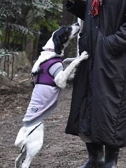 散歩中は他犬にも反応興味があり挨拶がしたいようですが、ドタバタ派手に近づいてしまう為お相手をビックリさせてしまう事が多々あります。他犬への攻撃性は今のところみられません。