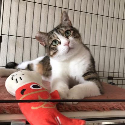 ラッキーに来た当初は目の周りが目やにで汚れていましたが、なんせ逃げるので拭いてやることもできず… でも時間をかけて地道に顔を洗い、今ではイケにゃんぶりを発揮✨ 人慣れはまだまだですが、おもちゃを持っていけば遊んでくれます♪ 同室のブランと仲が良く、兄貴と慕われています。