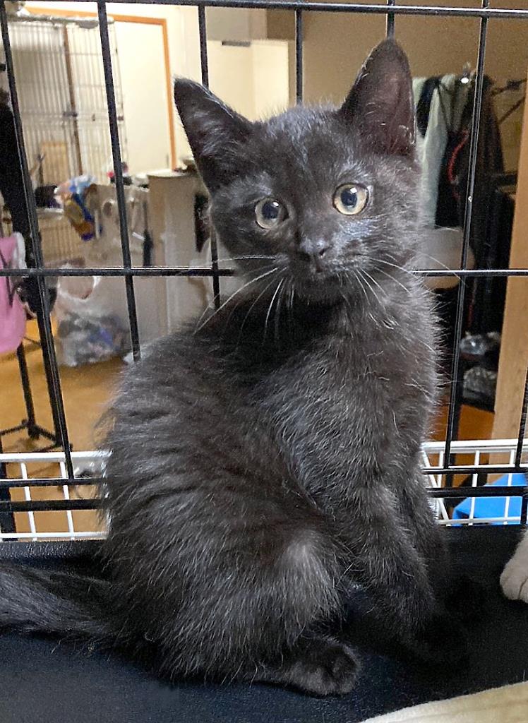 真っ黒で瞳がクリンクリンのキュートな黒子猫です。