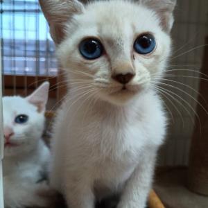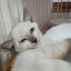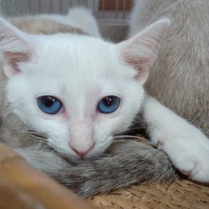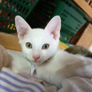 お母さん猫ちゃんは避妊済み、とても小さく真っ白な美人猫ちゃんです。