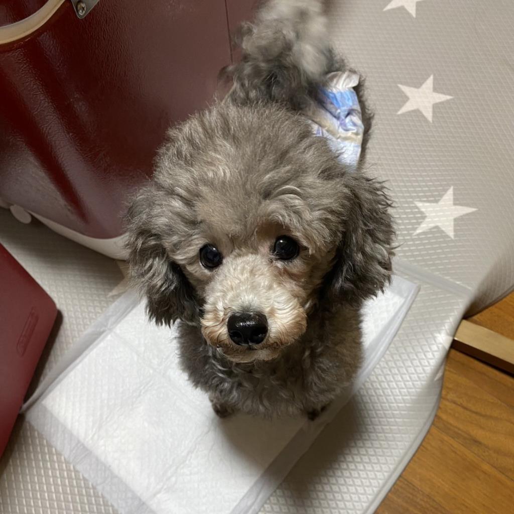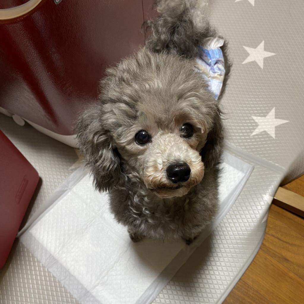 トイレ: おしっこはケージ内のシートでできます。 うんちはケージ近くの床でしてしまうことが多いです。 散歩中にすることもあります。