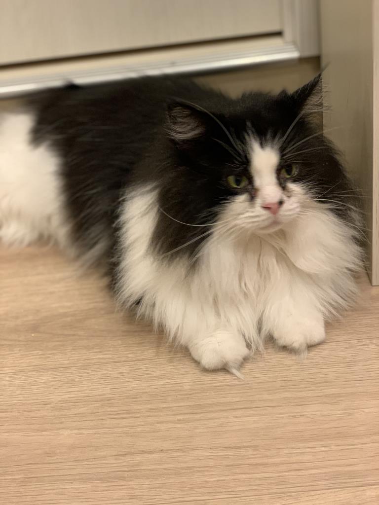 おっとりしていて優しい性格の男の子。争い事は好まず、人間が大好きでいつも構ってほしい甘えん坊です。喉を鳴らす時の音が鳩の鳴き声にそっくりです。