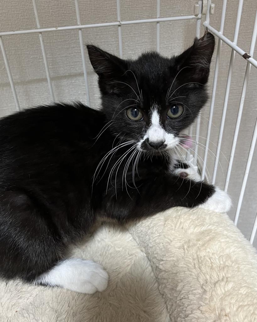控えめで大人しい性格だけどすばしっこくて思わぬところからひょっこり出てきたりするおしゃまさんです。同じ場所から保護された子達よりもほんの少し大きかったので避妊手術後リリースする予定で耳カットしましたが、やはりまだ幼いため保護することにしました。